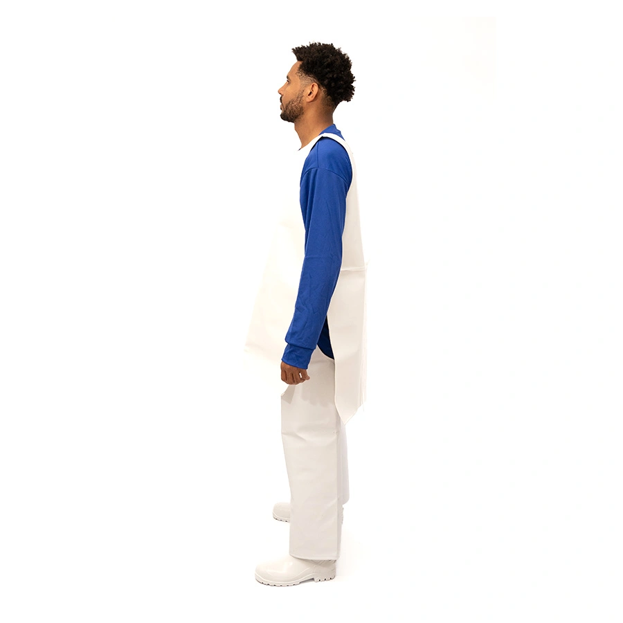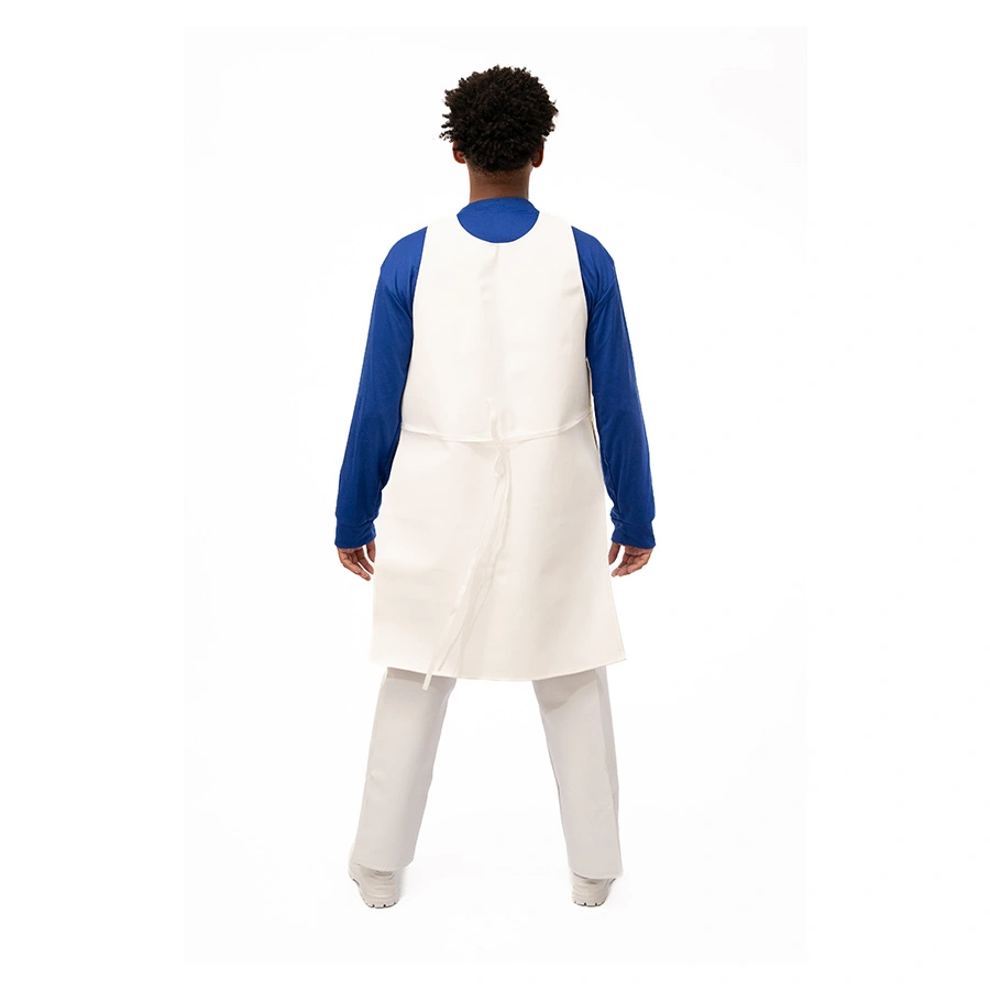 Avental de segurança confeccionado em material sintético, tiras na cintura para ajuste na frente e nas costas.