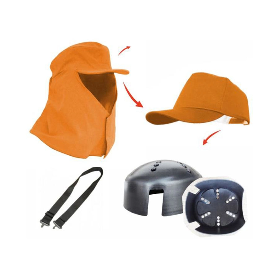 Capuz de segurança tipo boné confeccionado em tecido de algodão, com casquete interno, aba tipo jóquei, pala para proteção do pescoço com fechamento em velcro.