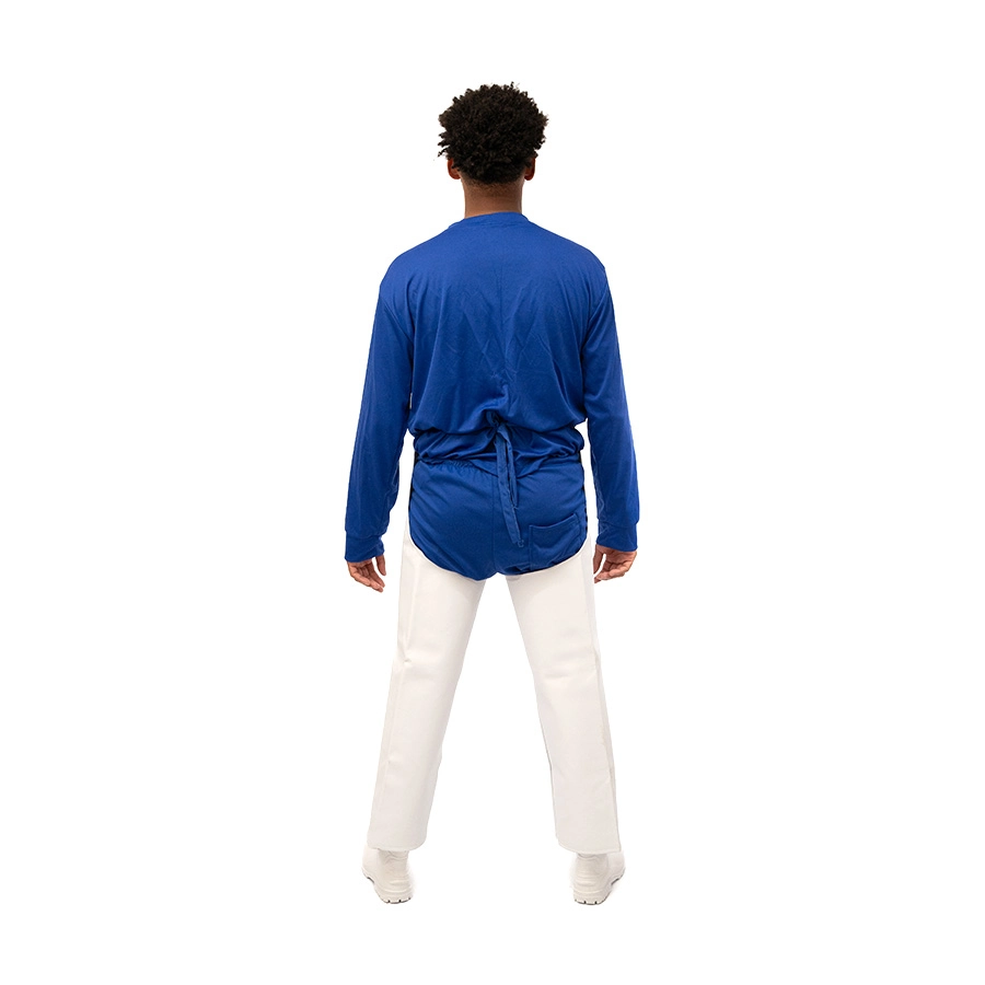 Calça de segurança confeccionada em material sintético, tipo boiadeiro, ajuste na cintura através de tira de malha dupla de poliéster (helanca), fechamento através de costuras duplas e solda eletrostática.