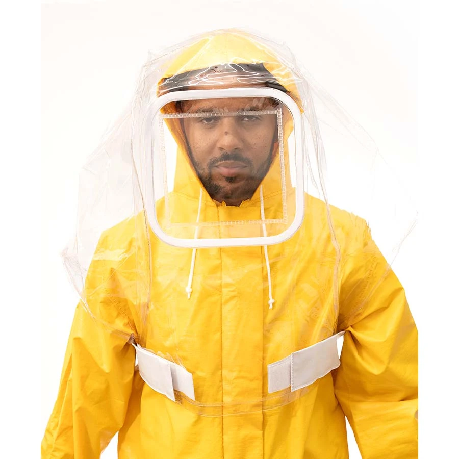 Capuz de segurança confeccionado em laminado de PVC, modelo carrasco, fechamento por meio de solda eletrônica, com visor incolor, suspensão plástica interna para ajustes. Também na versão incolor. Opções: KP ou PVC.