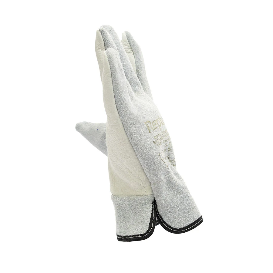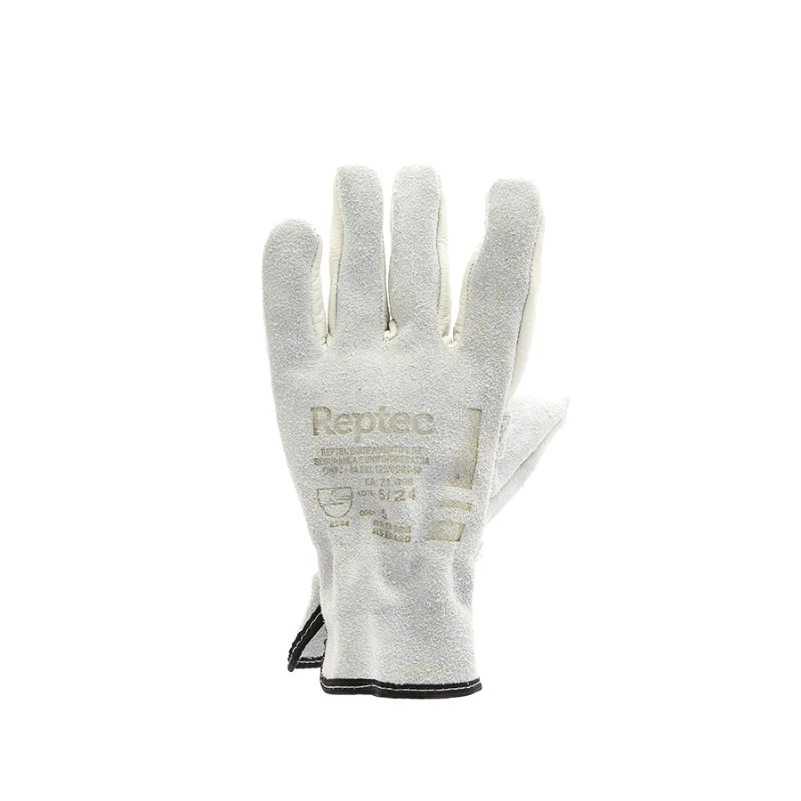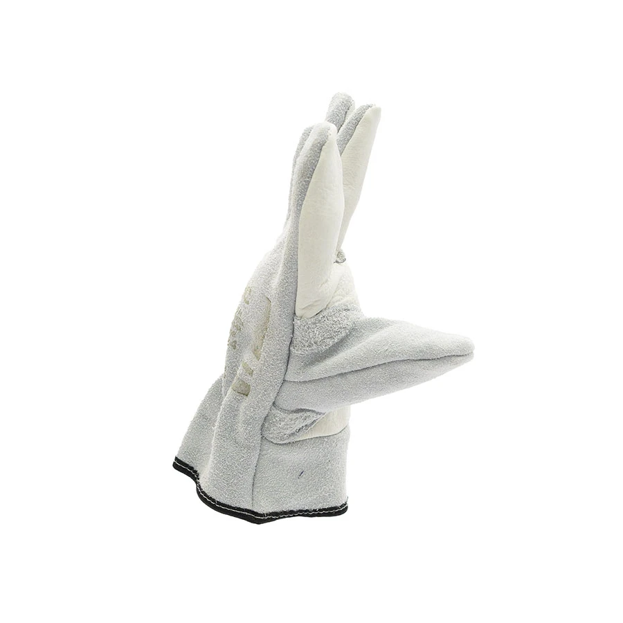 Luva de segurança confeccionada em vaqueta na palma, dorso em raspa, reforço interno na palma, elástico no dorso para ajustes e acabamento em viés no punho de 7cm. Tamanhos: 7(P) 8(M) 9(G) 10(GG) e 10,5.