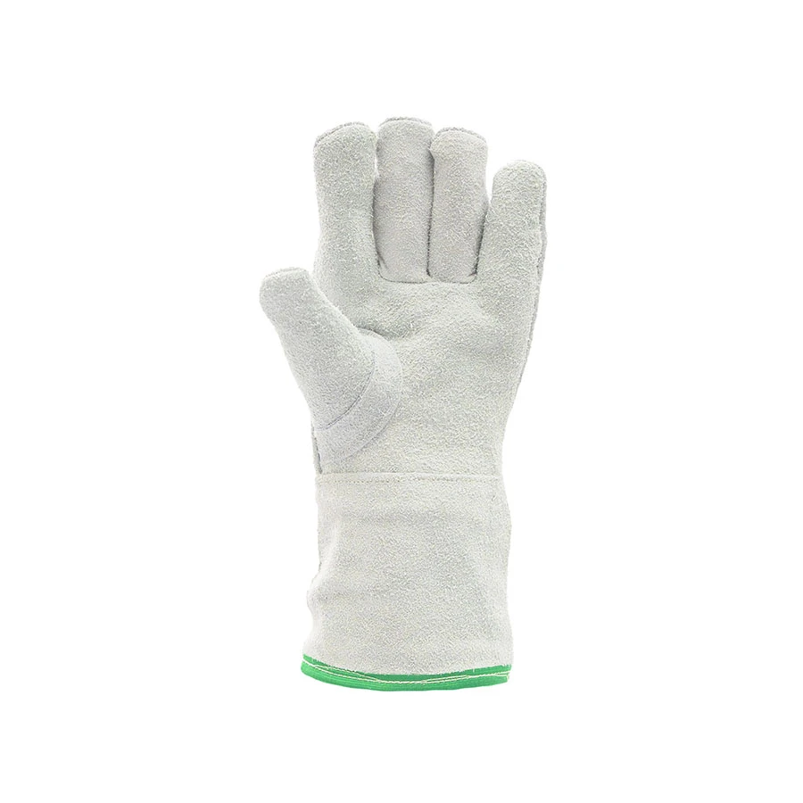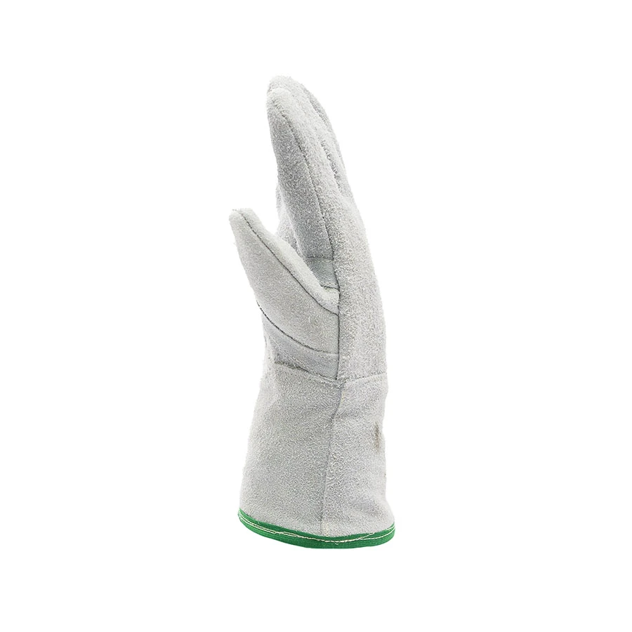 Luva de segurança confeccionada em raspa com tratamento isolante térmico, reforço meia lua no punho, tira de reforço externo entre os dedos polegar e indicador, tiras e velcro recobertos para ajuste no punho, forração em manta térmica e contra forro em lona industrial felpada, punho nos tamanhos 20cm, 30cm e 40cm.