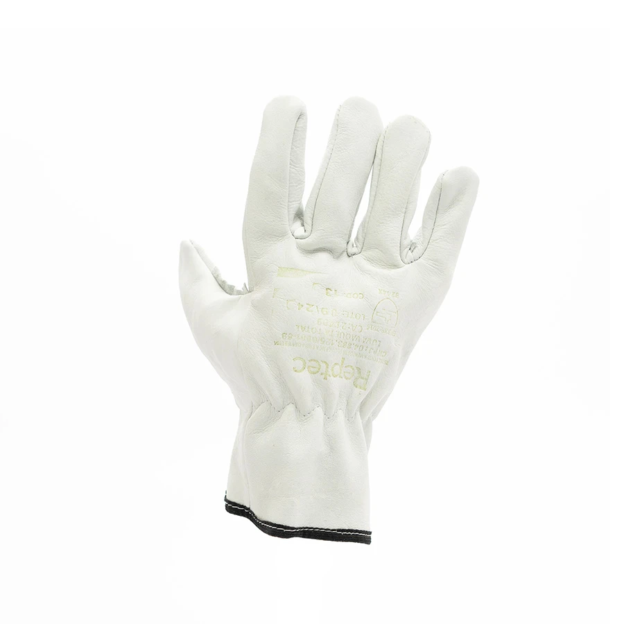 Luva de segurança confeccionada em vaqueta classe “A” curtida ao cromo com óleo especial MK, palma com reforço interno em vaqueta, reforço anelar entre o polegar e indicador e na performance em forjeta entre os dedos, elástico no dorso para ajuste, acabamento em viés no punho de 7cm. Tamanhos: 7(P) 8(M) 9(G) 10(GG).