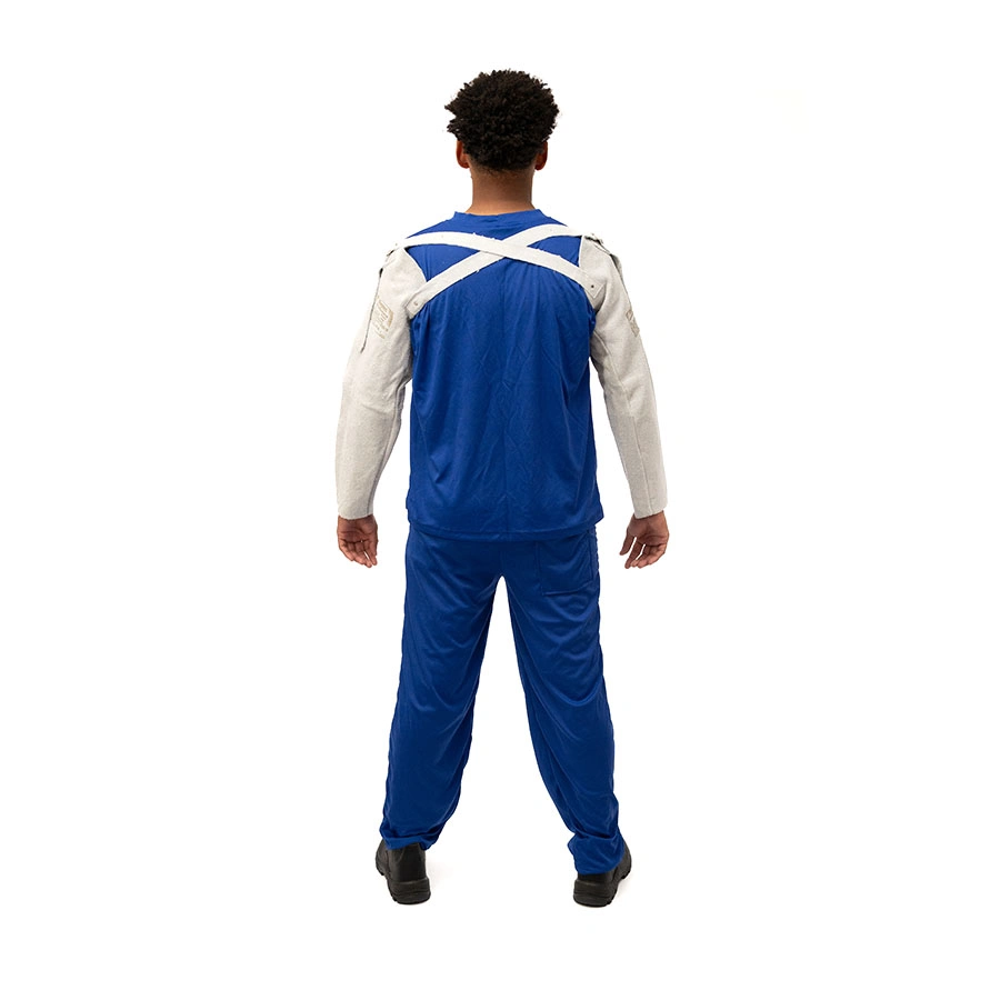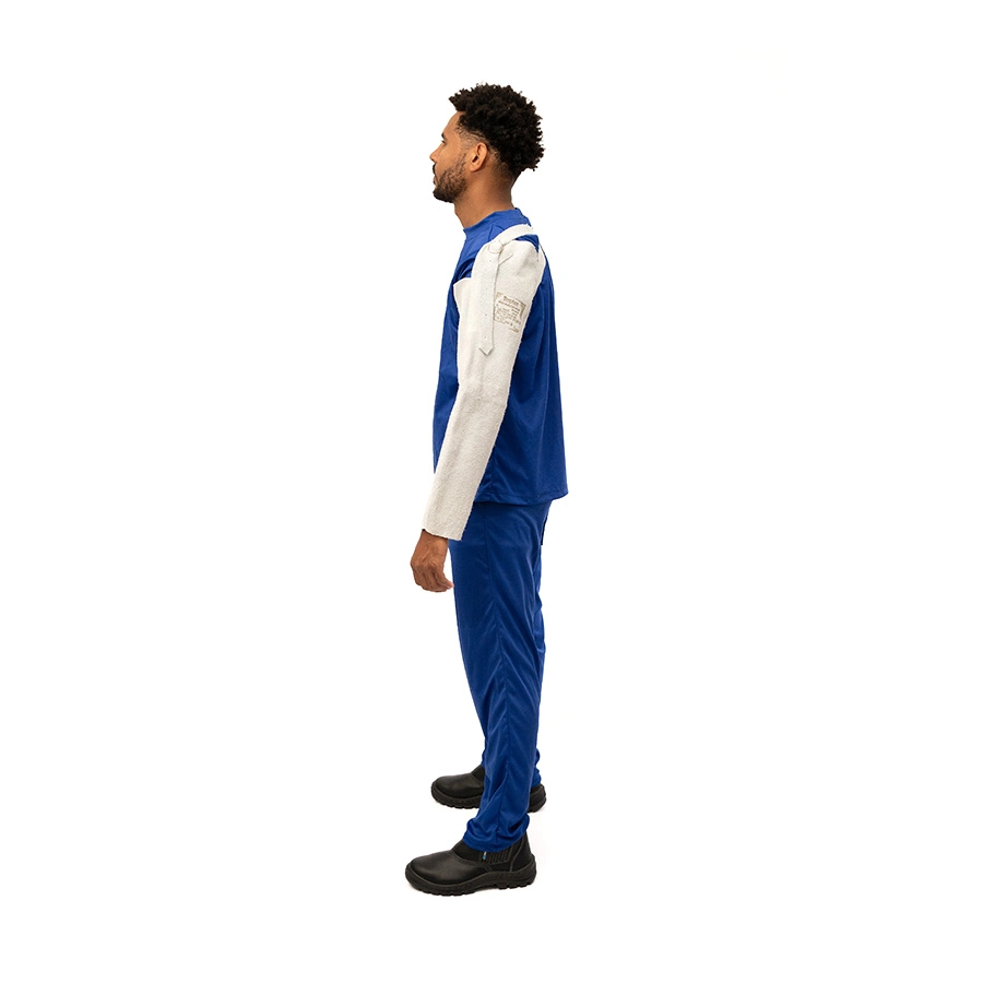 Mangote de segurança, confeccionado em raspa GRUPON , tiras em raspa presas por meio de rebites, fivelas metálicas para ajustes, costura em linha de algodão. Disponível nos tamanhos: P,M,G – Altura: 35 e 40 cm.